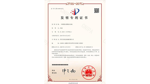 扒谷機專利公司已通過了ISO9001質(zhì)量管理認證、ISO14001環(huán)境管理體系認證和ISO45001職業(yè)健康安全管理體系認證。為中國儲備糧管理總公司糧機設備的A級供應商、安徽省高新技術(shù)企業(yè)、擁有阜陽市企業(yè)技術(shù)中心。